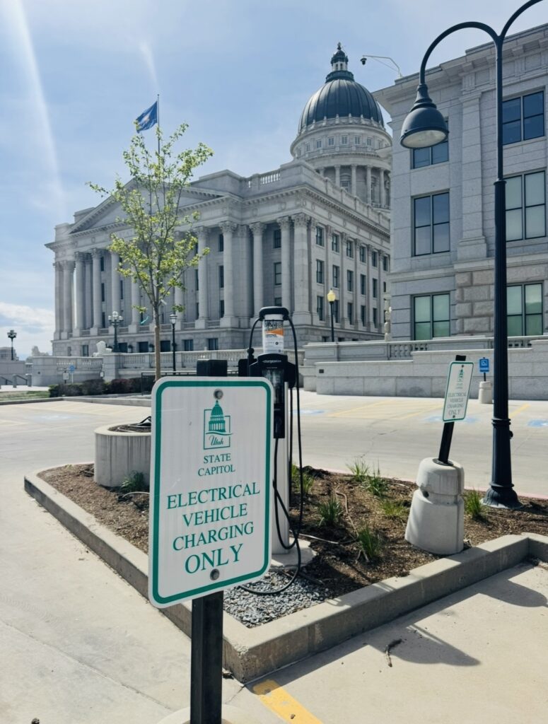 Cargador de vehículos eléctricos en estacionamiento del Capitolio